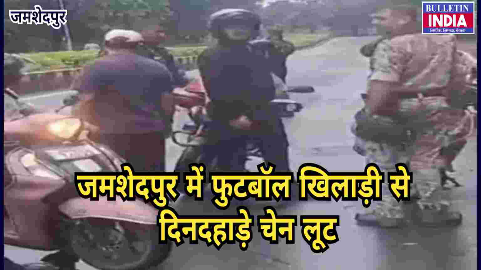 • जमशेदपुर में फुटबॉल खिलाड़ी से दिनदहाड़े चेन लूट, अपराधी पिस्टल दिखाकर फरार।