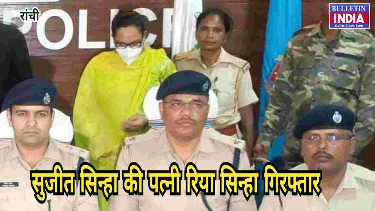 रांची। राजधानी रांची पुलिस ने गुरुवार को कुख्यात अपराधी सुजीत सिन्हा की पत्नी रिया सिन्हा को गिरफ्तार कर लिया है। रिया पर गोलाबारी और रंगदारी मांगने के एक संगीन मामले में संलिप्त होने का आरोप है।