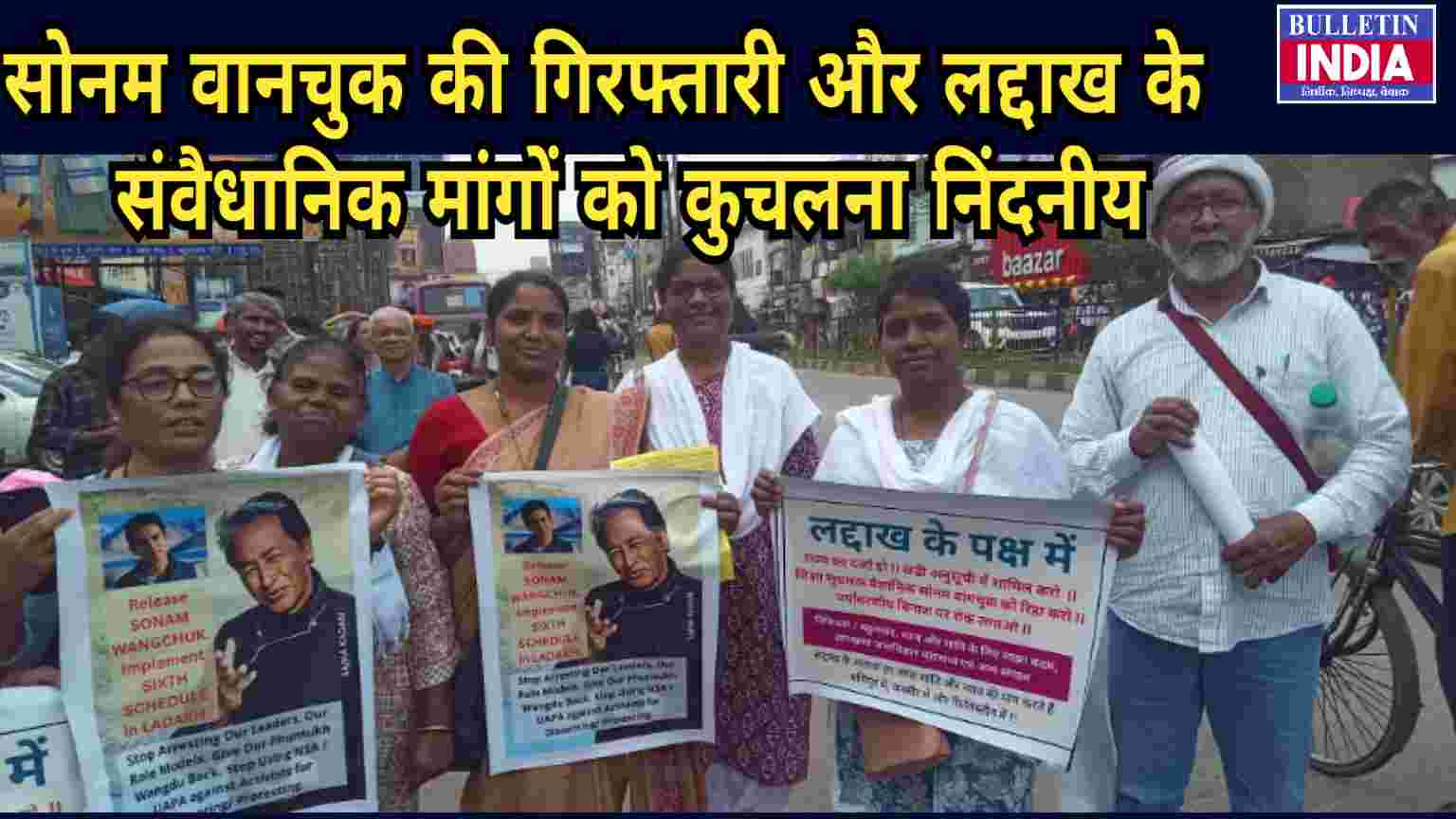 इन तमाम मामलों पर 6 अक्टूबर को राज्य के कई सामाजिक संगठनों व राजनीतिक दलों का साझा मंच झारखंड जनाधिकार महासभा, साझा कदम,भाकपा माले, आदिवासी संघर्ष मोर्चा, ऐपवा, महिला हिंसा विरोधी संगठन, आदिवासी मूलवासी जनाधिकार मंच, बगईचा व जलेस द्वारा राजधानी रांची के अल्बर्ट एक्का चौक पर एक कार्यक्रम किया गया जिसमें कहा गया कि हम सभी साथी व्यक्तिगत और संगठनिक तौर से केंद्र सरकार की लद्दाख पर दमन एवं सोनम वांगचुक की राष्ट्रीय सुरक्षा अधिनियम (NSA) के तहत प्रायोजित गिरफ्तारी की कड़ी निंदा करते हैं मांग करते हैं कि लेह लद्दाख को तत्कालीन पूर्णरूप से राज्य घोषित करे एवं 6ठी अनुसूचित क्षेत्र का दर्जा दे।